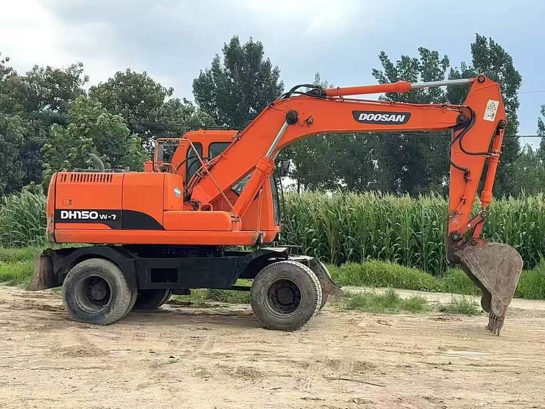 حفرة دوسان DH150W-7 ذات عجلات مستعملة، وزن تشغيل 15 طن، حالة جيدة، ساعات عمل قليلة، جاهزة للتصدير من الصين، مثالية لبناء الطرق، المشاريع الحضرية،عمليات التعدين الخفيفة.